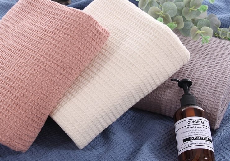 Chất liệu cotton waffle 100%, có các màu hồng cá hồi, kem, nâu nhạt, xanh dương, thích hợp cho mùa hè và vùng khí hậu nhiệt đới.